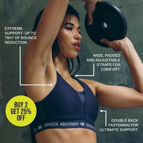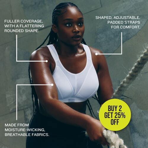 Terms and conditions: Buy 2, get 25% OFF is valid on purchases of two and applies to selected products: Ultimate Run Bra in White and Black, Ultimate Run Bra Padded in Black, D+ Max Support Sports Bra in Black, White and Navy, Multi Support Sports Bra in Black and Grey. Cannot be used in conjunction with any other offers, codes or discounts. Add two bras to your basket for the offer to be automatically applied at checkout. Offer can only be used once per order. Offer ends on December 2nd 2025 at 23:59pm.